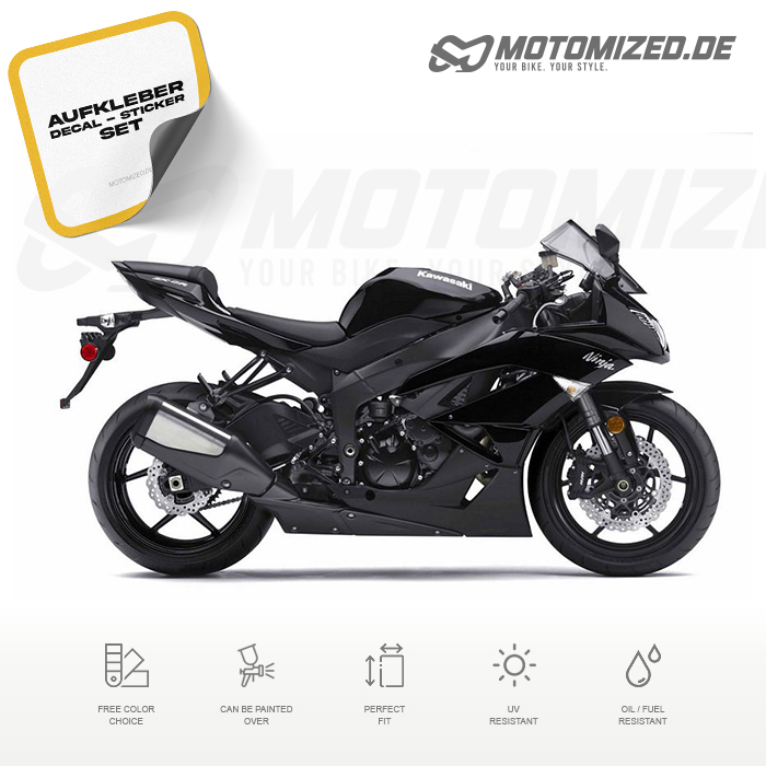 Dieses Dekorset beinhaltet alle abgebildeten Aufkleber für die Kawasaki ZX-6R 2010 in Schwarz zum selbst verkleben! Die Aufkleber können entweder im Nass- oder Trockenverfahren verklebt werden, alle Informationen dazu stehen in unserem eigenen Motomized.de - Sticker-Guide der natürlich bei deiner Bestellung dabei ist.