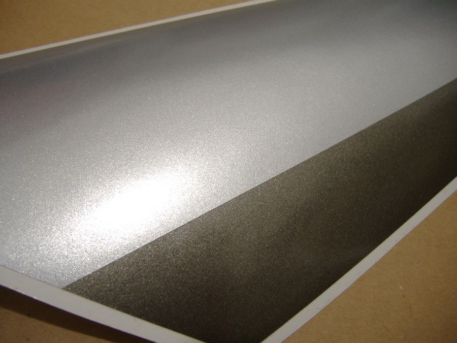 Die Trägerfolie ist meistens mit den Herstellerlogos der Folien bedruckt. Diese wird abgezogen und legt somit den Kleber der Aufkleber frei.